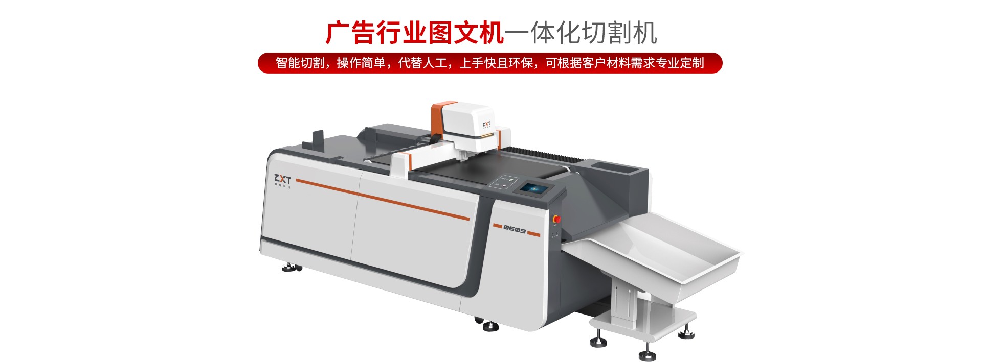 卓星廣告行業電腦切割機主要針對廣告行業后道加工,為其提供高性能、高速度的一體化切割方案,快速完成全切、半切、鏤銑、打孔、折痕、標記、識別輪廓切割等各類工藝,解決異形圖畫裁剪難題,滿足少批量,多訂單、多款式的生產目標。設備全系標配CCD定位切割功能,能夠輕松完成各種柔性材料切割任務,更快速、更穩定、更準確地加工出廣告制品,降低切割成本,提高切割效率,讓客戶在同行業中保持競爭優勢。