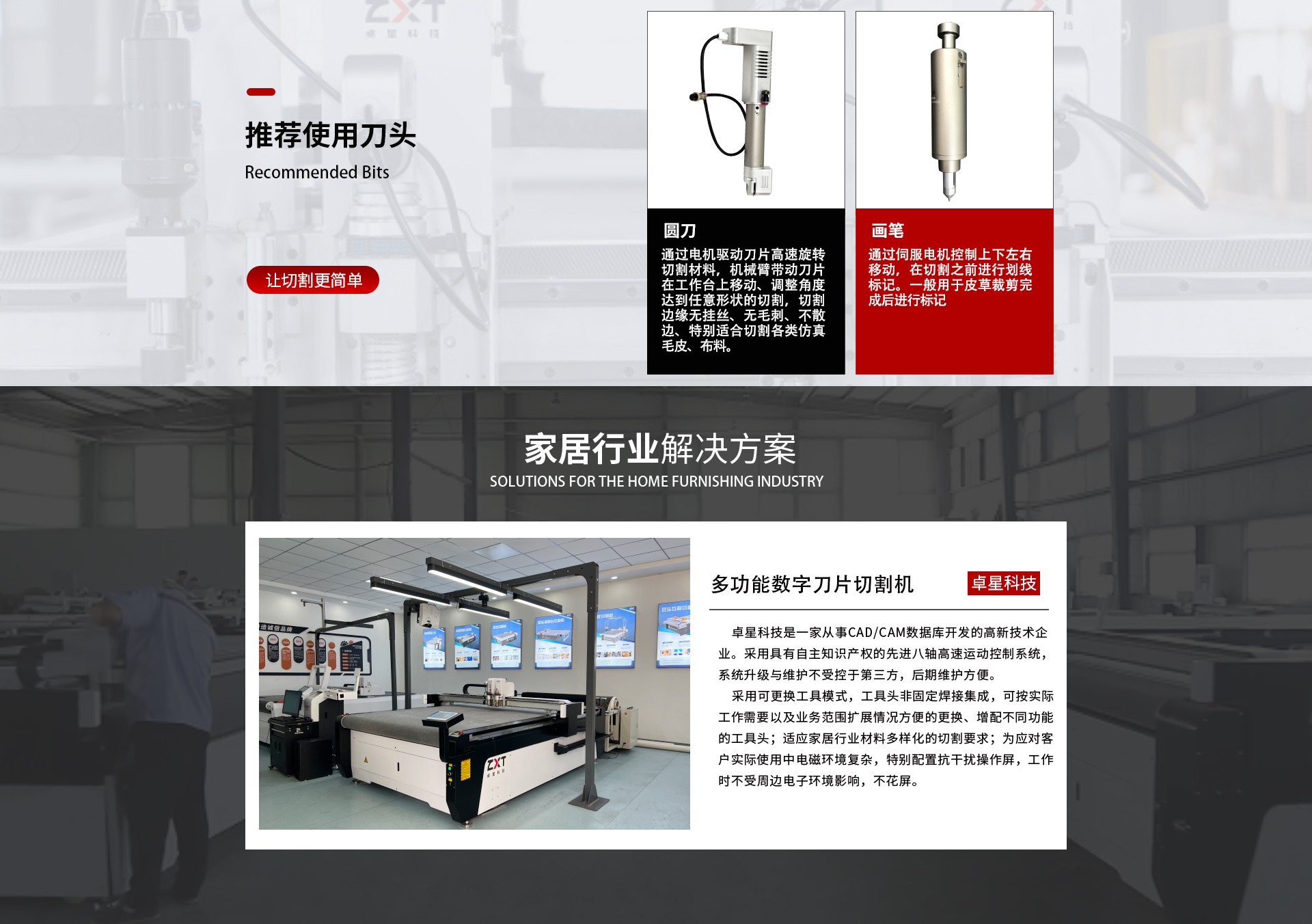 采用可更換工具模式,工具頭非固定焊接集成,可按實際工作需要以及業(yè)務范圍擴展情況方便的更換、增配不同功能的工具頭;適應家居行業(yè)材料多樣化的切割要求;為應對客戶實際使用中電磁環(huán)境復雜,特別配置抗干擾操作屏,工作時不受周邊電子環(huán)境影響,不花屏;